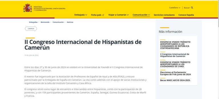 II Congreso Internacional de Hispanistas de Camerún _ Informe Entre los días 27 y 30 de junio de 2024 se celebró en la Universidad de Yaundé el II Congreso Internacional