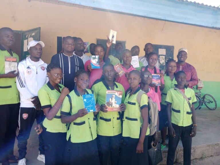 Don de livres de PEA2 au « Collège La Réussite Djefatou » de Garoua À l’occasion de la nomination de M. AHMADOU ABDOULAYE (membre du BEN Nord de PEA2), l’association